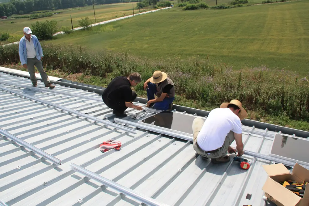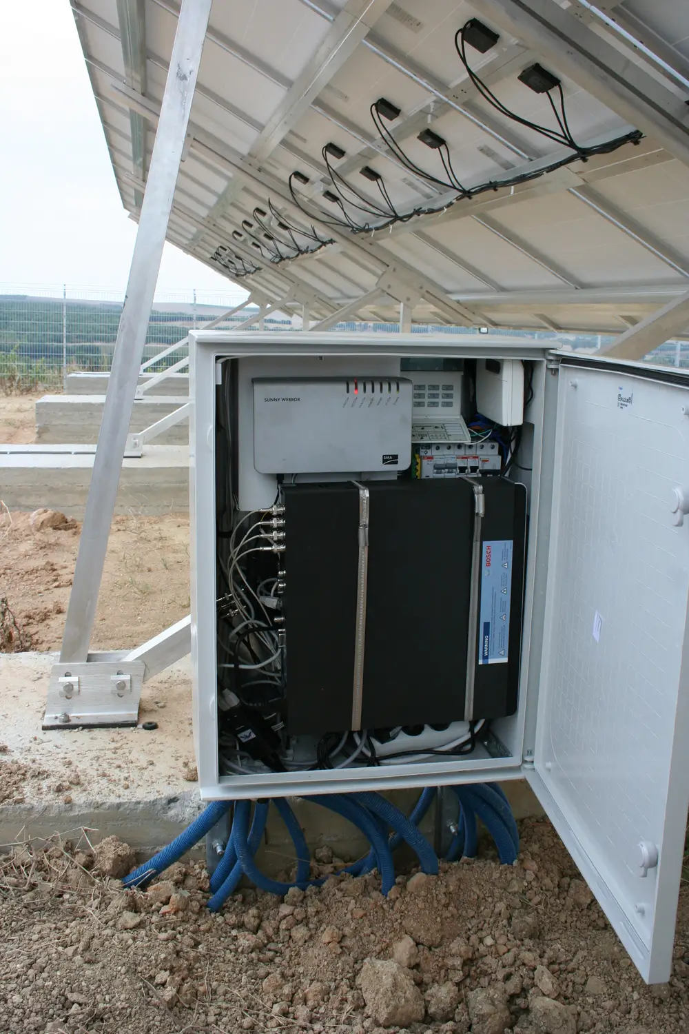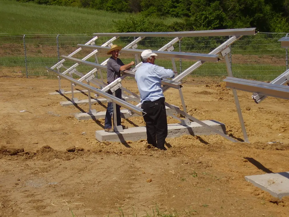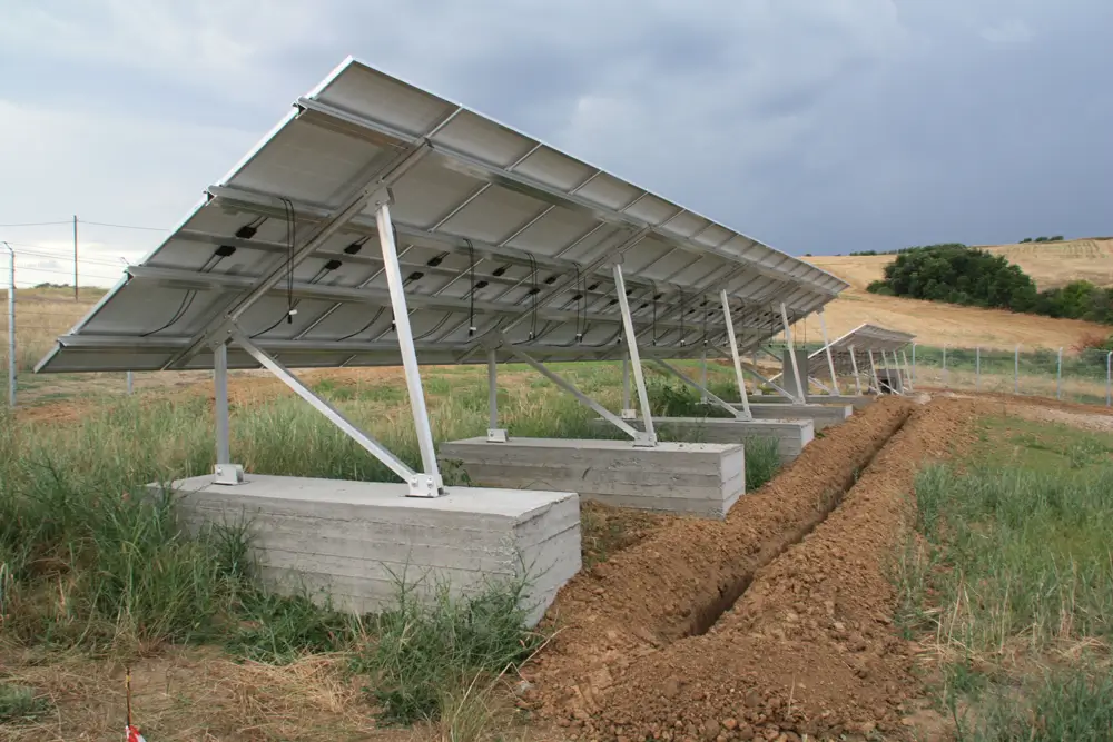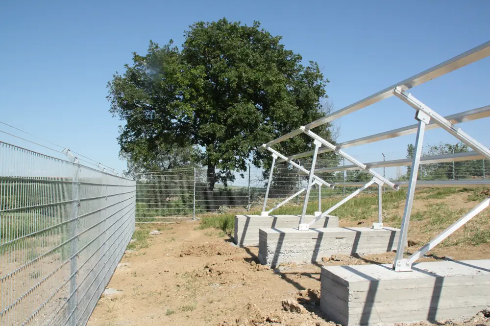 Technical Highlights: The unique terrain posed challenges, leading to various open-field mounting methods, including piling and concrete foundations, especially on a steep slope. Other sections were mounted on tra strategically employed based on pezoidal metal roofs (warehouse). Diverse technologies were specific requirements: polycrystalline panels (Hyundai) for optimal ground mounting and thin-film panels (Sharp) for an east-west-oriented roof. SMA and Fronius inverters were chosen for their reliability.